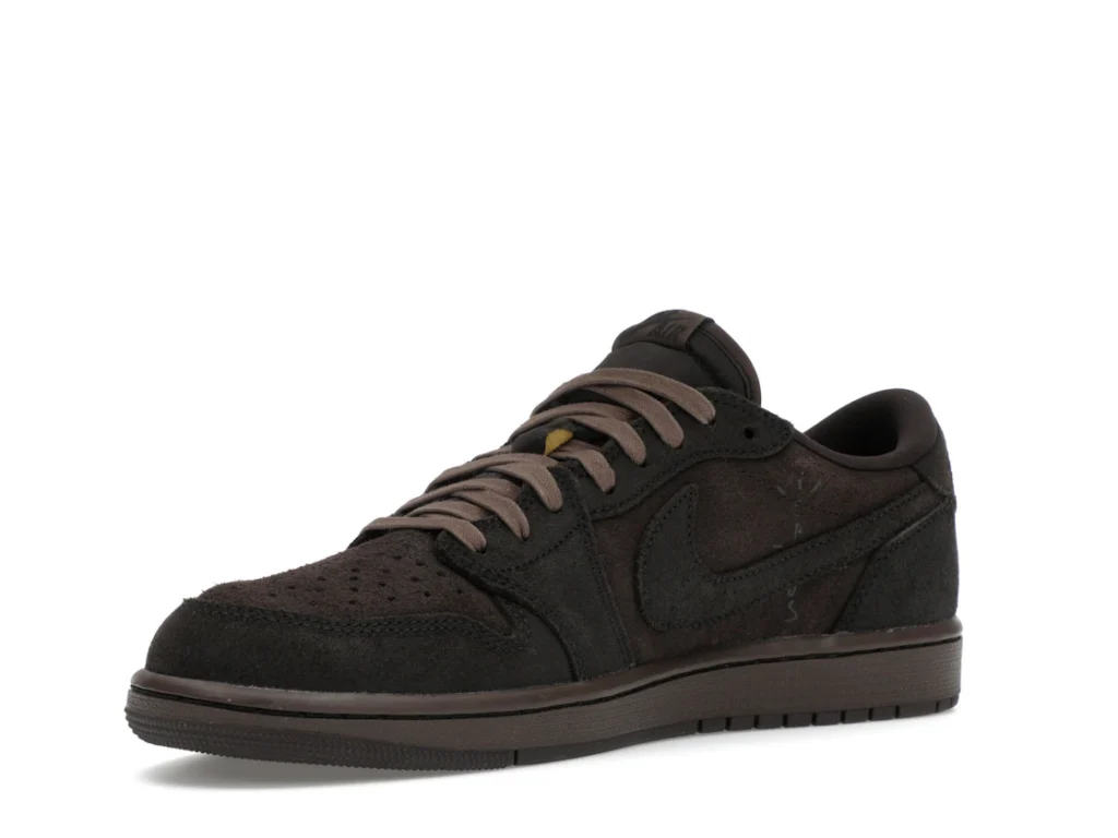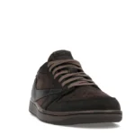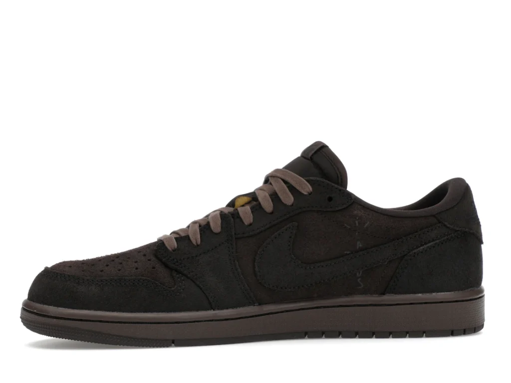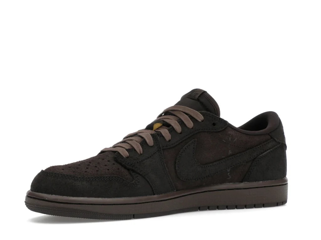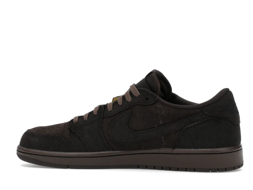 The Air Jordan 1 Retro Low OG SP Travis Scott Velvet Brown is a fresh collaboration that effortlessly merges the boldness of Travis Scott’s aesthetic with the timeless allure of the Jordan 1 silhouette. Featuring a dark mocha, black, and velvet brown colorway, this sneaker embraces an earthy palette that feels both rugged and luxurious. Signature Cactus Jack branding and reverse Swoosh designs elevate the sneaker’s uniqueness, making it a must-have for collectors and fans.
