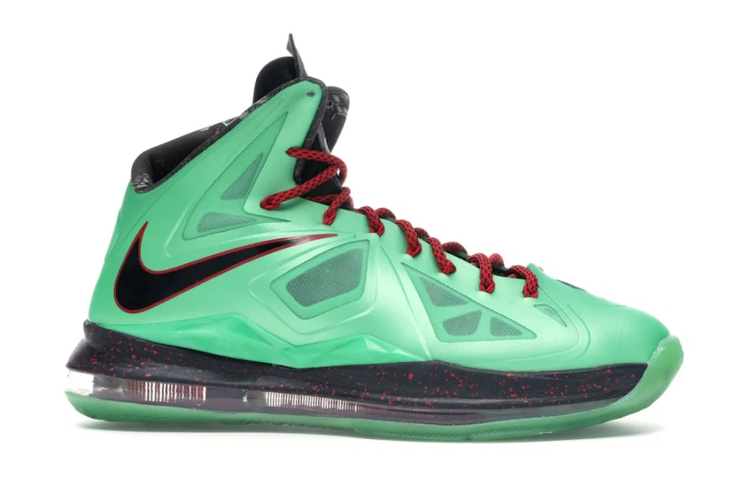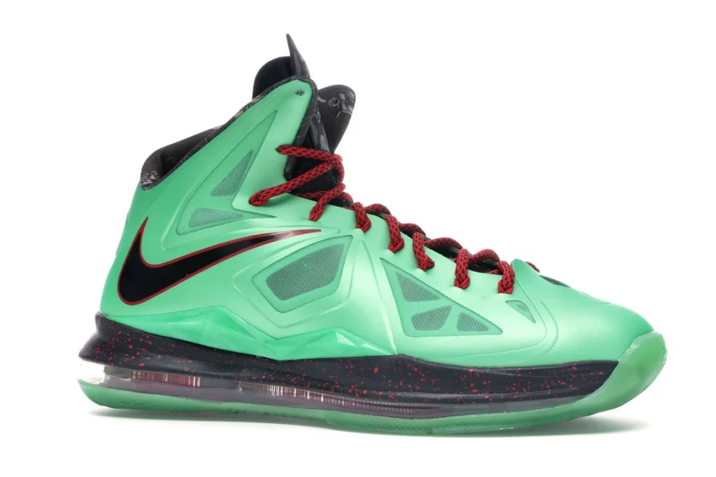 Our experts think the most outstanding feature of these sneakers is the black-speckled midsole with a full-length Air Max unit resting in a green outsole. The Nike LeBron X Cutting Jade was released on November 10th, 2012, for $180.