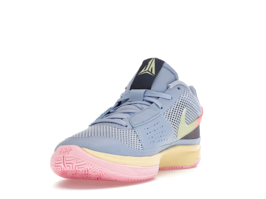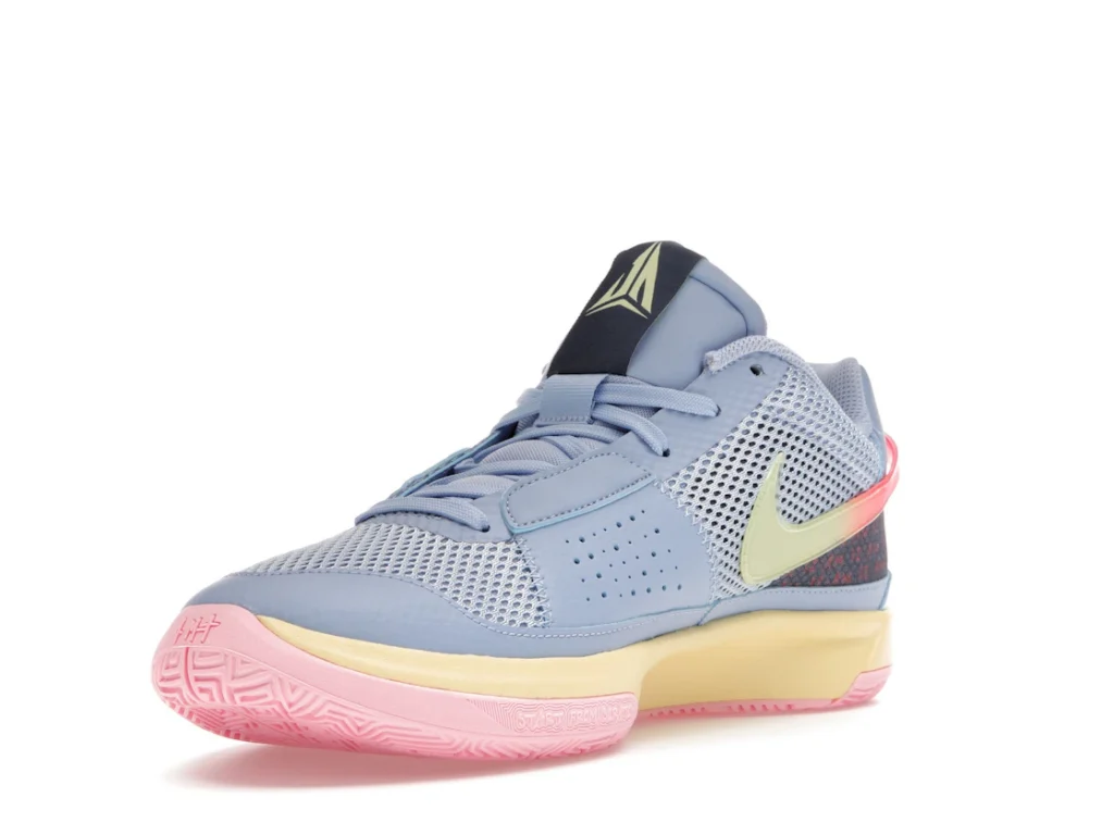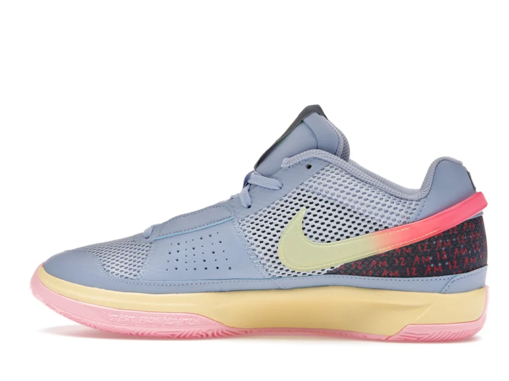 The Nike Ja 1 Day One is constructed using Cobalt Bliss leather and mesh uppers that sit on top of Citron midsoles. Ja Morant’s newly designed logo sits on the tongue of each sneaker and insole of the left sneaker. The insoles feature a print of a handwritten note from Ja, dedicated to his strongest supporters that helped him along his journey.
