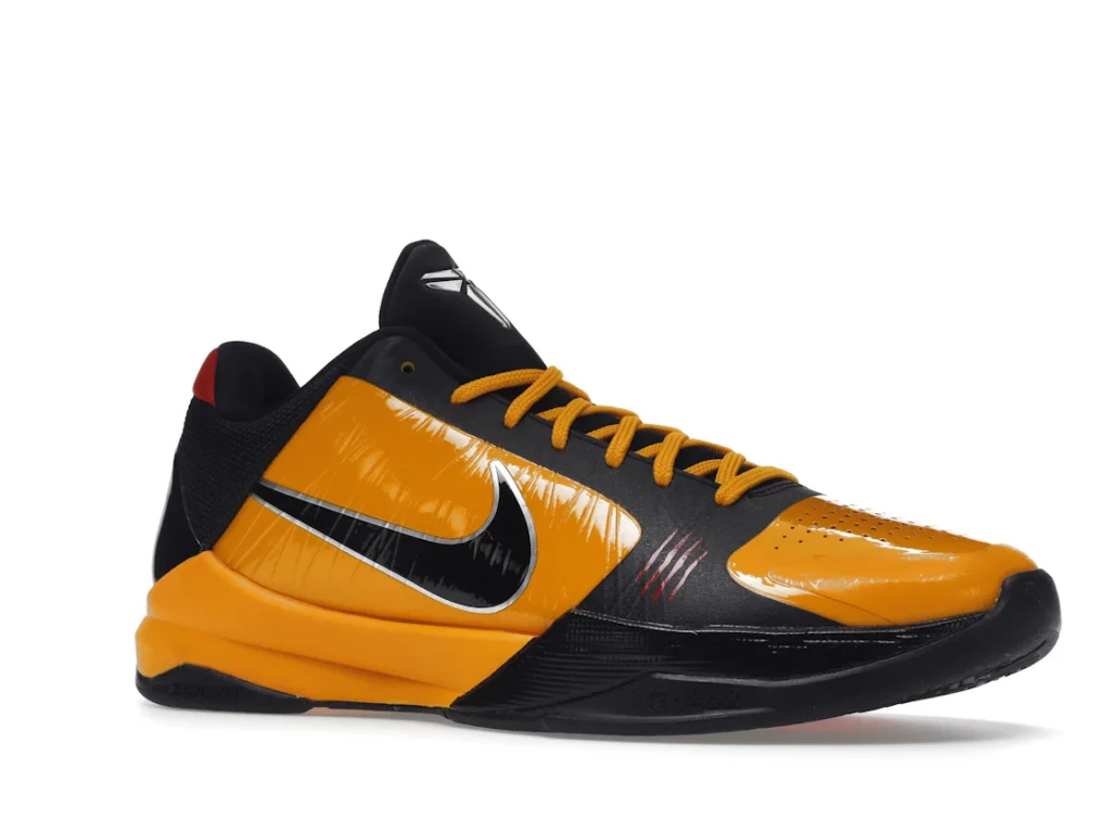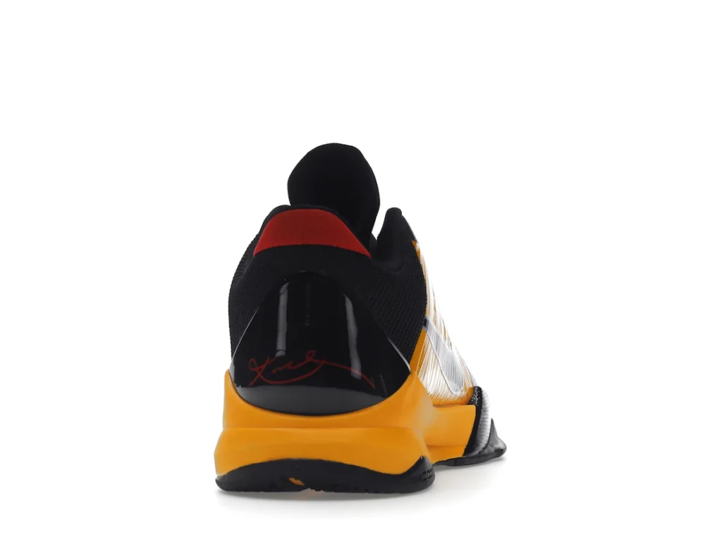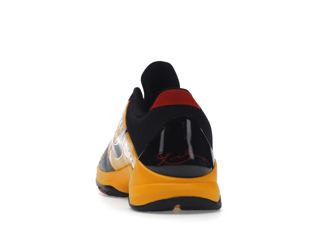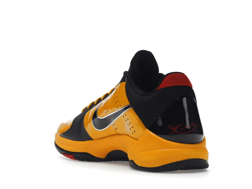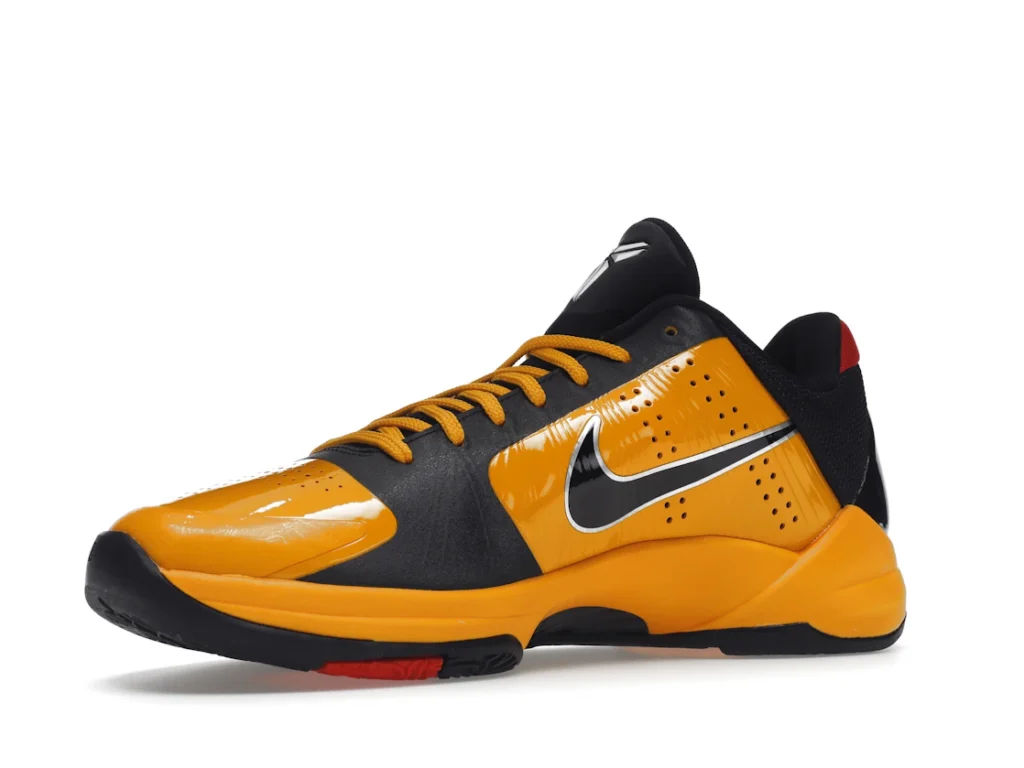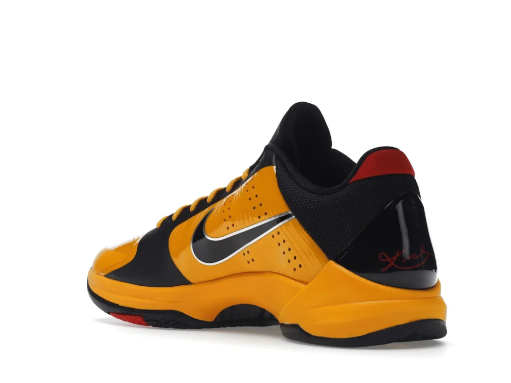 The Kobe V Protro Bruce Lee is inspired by two classic Bruce Lee films, Game of Death and Enter the Dragon. Black and Yellow paneling on the upper pays homage to the one-piece jumpsuit that Lee wore in Game of Death (famously duplicated in Kill Bill), while the red scratch marks on the lateral side pay tribute to the final fight sequence from Enter The Dragon.