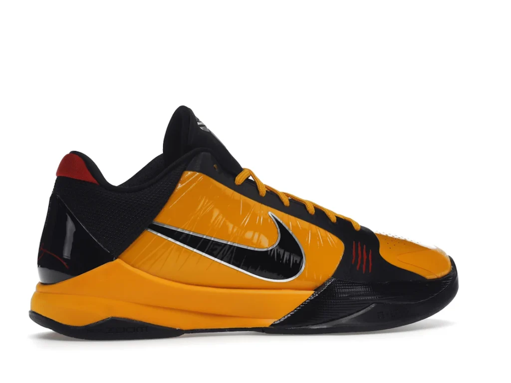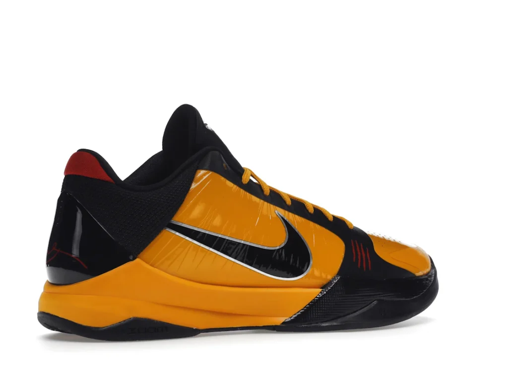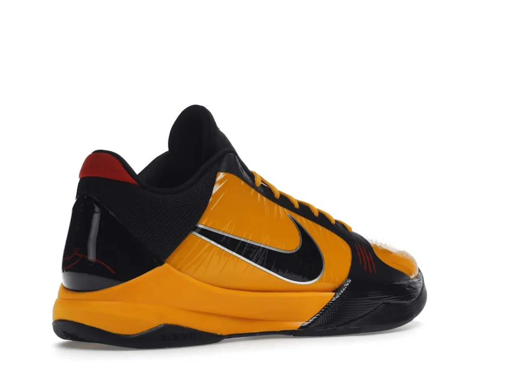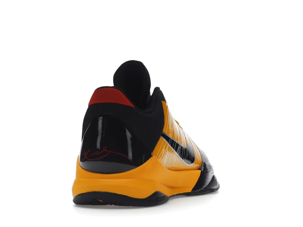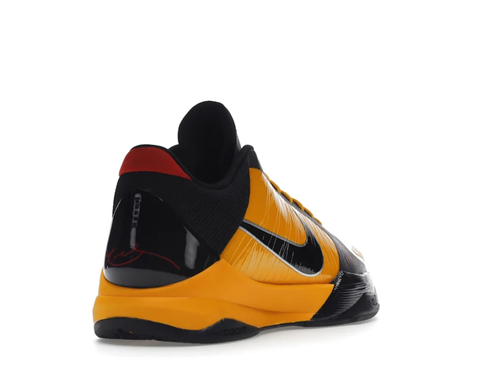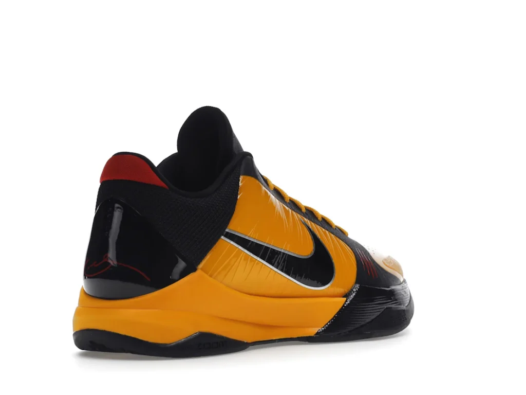 The Kobe V Protro Bruce Lee is inspired by two classic Bruce Lee films, Game of Death and Enter the Dragon. Black and Yellow paneling on the upper pays homage to the one-piece jumpsuit that Lee wore in Game of Death (famously duplicated in Kill Bill), while the red scratch marks on the lateral side pay tribute to the final fight sequence from Enter The Dragon.