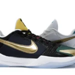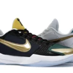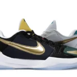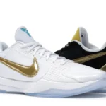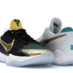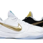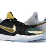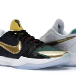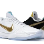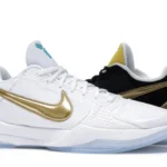 The Nike Kobe 5 Protro Undefeated What If Pack features a white mesh upper with golden Swooshes on the right shoe and a black mesh upper with golden Swooshes on the left shoe. From there, a two-toned, textured forefoot and a translucent, cushioned outsole complete the design. The Nike Kobe 5 Protro Undefeated What If […]