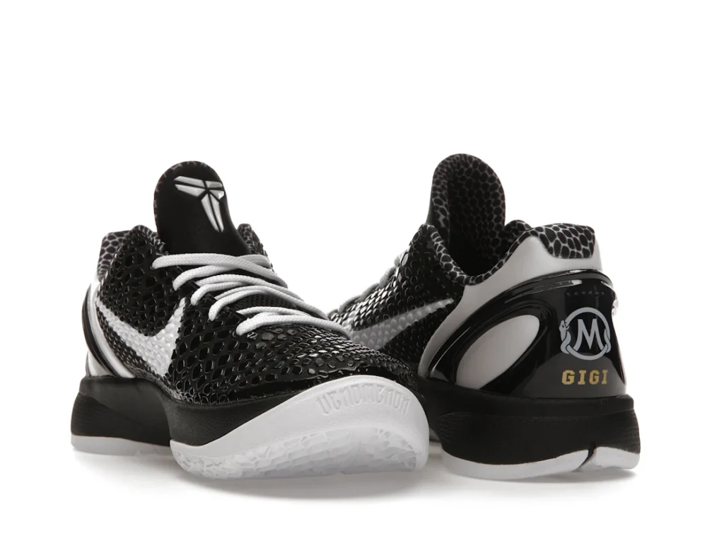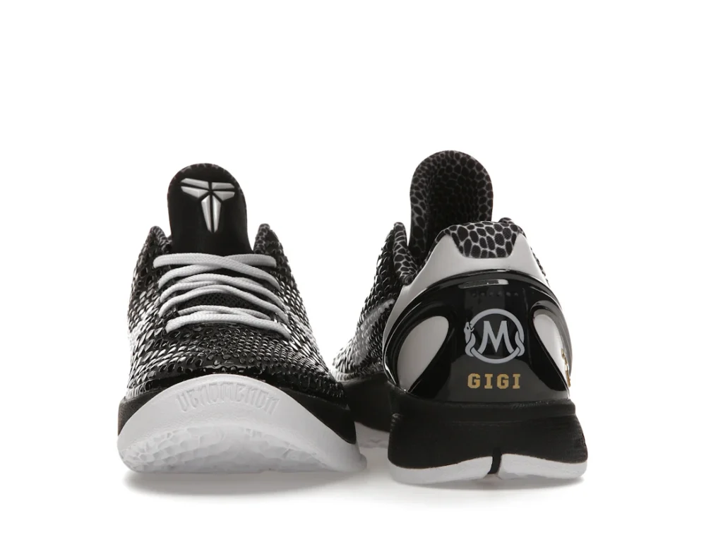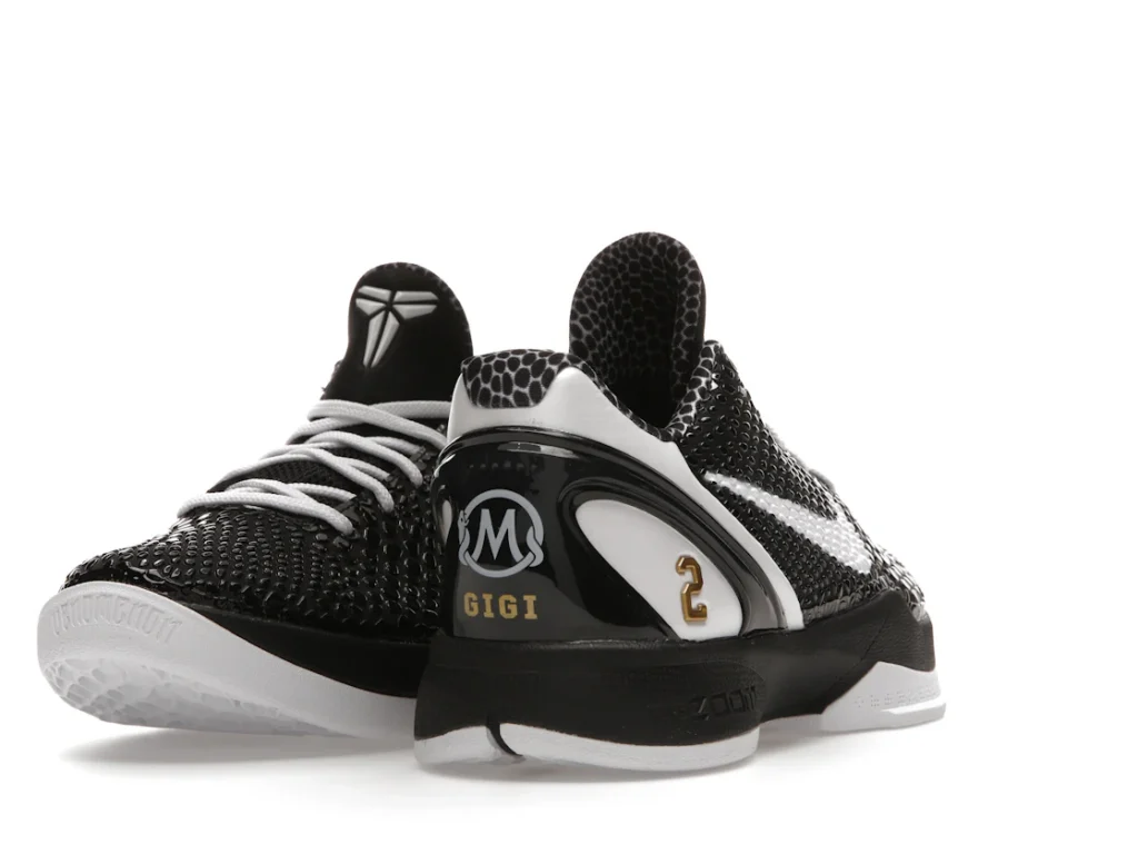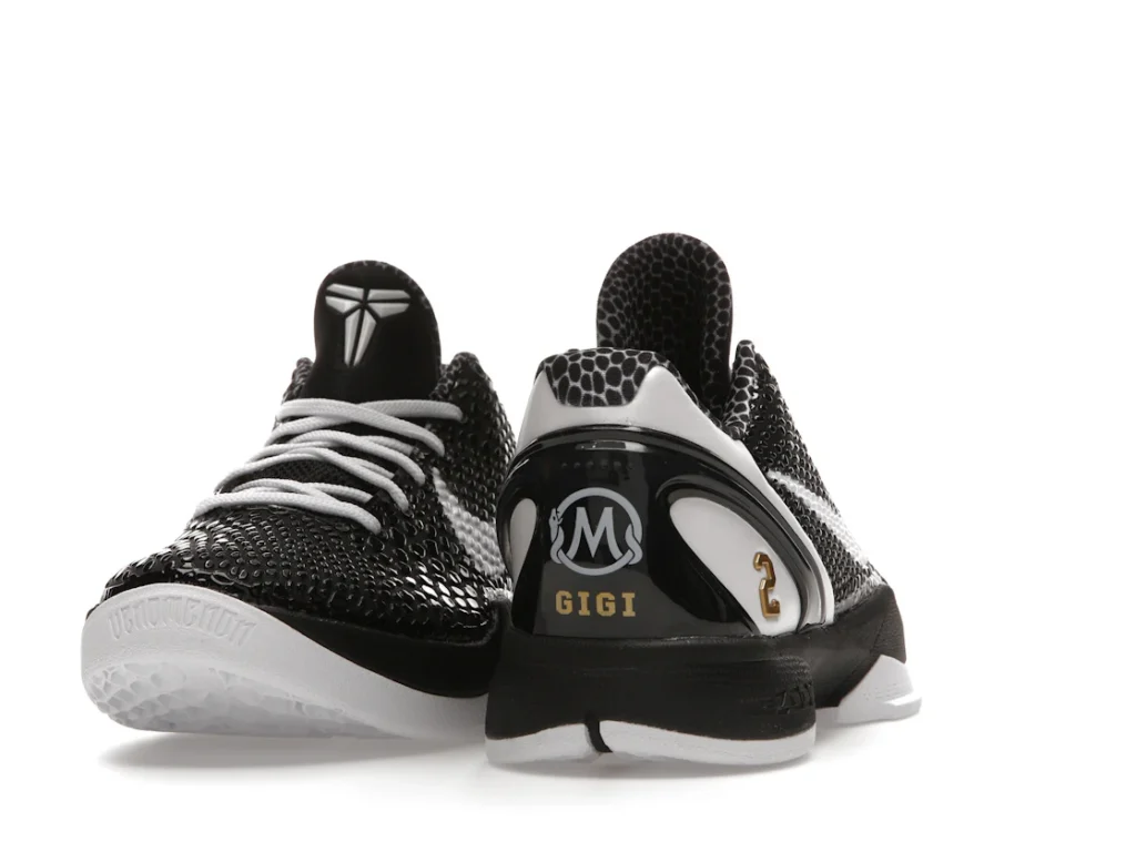 The Nike Kobe 6 Protro Mabacita Sweet 16 features a black snakeskin-inspired upper as a tribute to Kobe’s Black Mamba on-court moniker. From there, Gigi’s AAU basketball jersey number, 2, is stamped on both lateral sides of the ankle. The Mamba & Mambacita Sports Foundation crest is printed on the heel of each shoe followed by both Kobe and Gigi’s names underneath. Lastly, a neoprene and mesh tongue and signature Zoom midsole provide comfort and stability on and off the court.