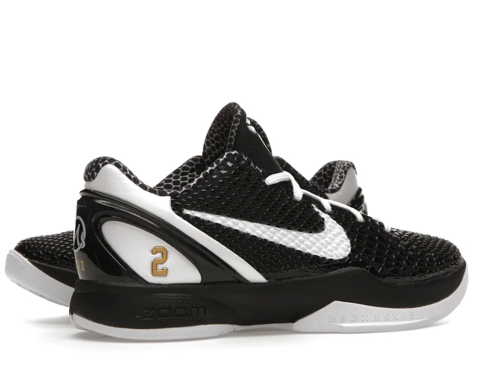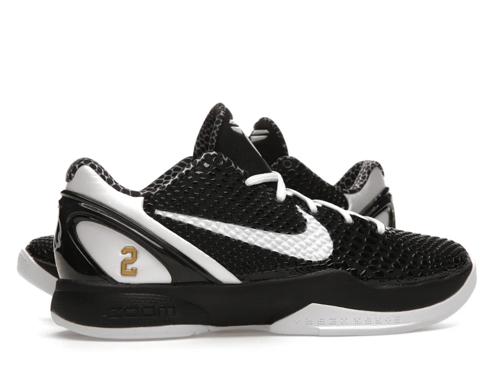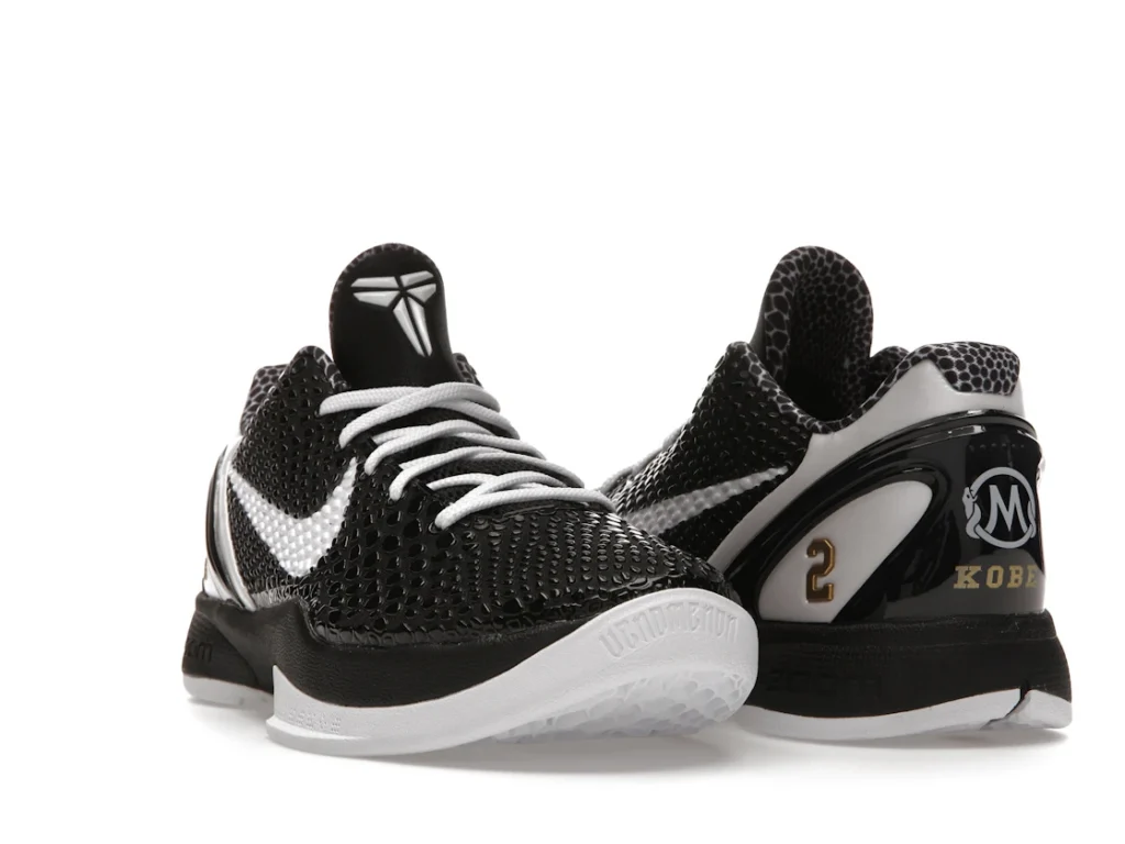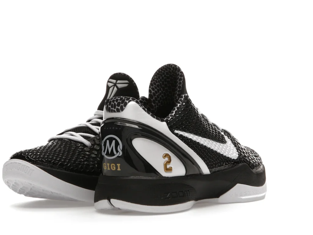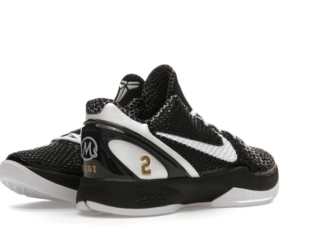 The Nike Kobe 6 Protro Mabacita Sweet 16 features a black snakeskin-inspired upper as a tribute to Kobe’s Black Mamba on-court moniker. From there, Gigi’s AAU basketball jersey number, 2, is stamped on both lateral sides of the ankle. The Mamba & Mambacita Sports Foundation crest is printed on the heel of each shoe followed by both Kobe and Gigi’s names underneath. Lastly, a neoprene and mesh tongue and signature Zoom midsole provide comfort and stability on and off the court.
