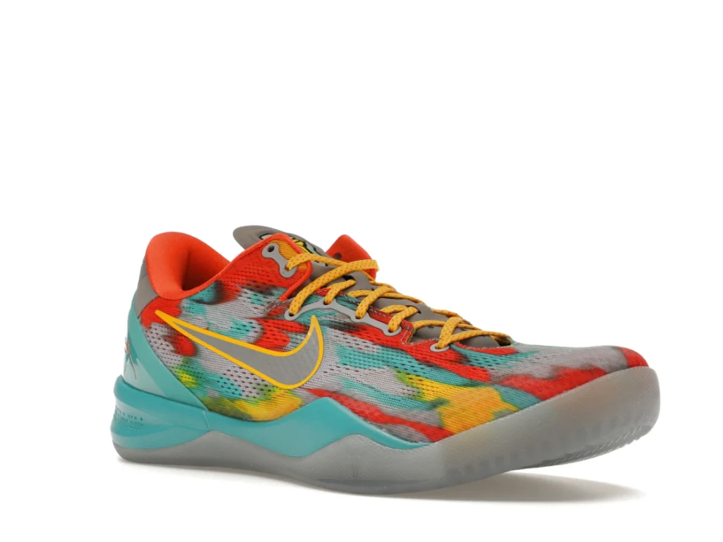 This re-release Protro of the Kobe 8 maintains the same look of the beloved original on the outside, but updates the tech found on the inside for the modern basketball player. This colorway taps into the heartbeat of Venice Beach, where athletes, artists, and dreamers converge. The sneaker’s design showcases a blend of textures and hues that mirror the beach’s energy, from the sunlit sands to the azure sky. The artistic strokes of red, yellow, and blue across the upper reflect the eclectic tapestry of the neighborhood, while the signature Nike Swoosh in a striking yellow captures the attention just like the gleaming California sun.