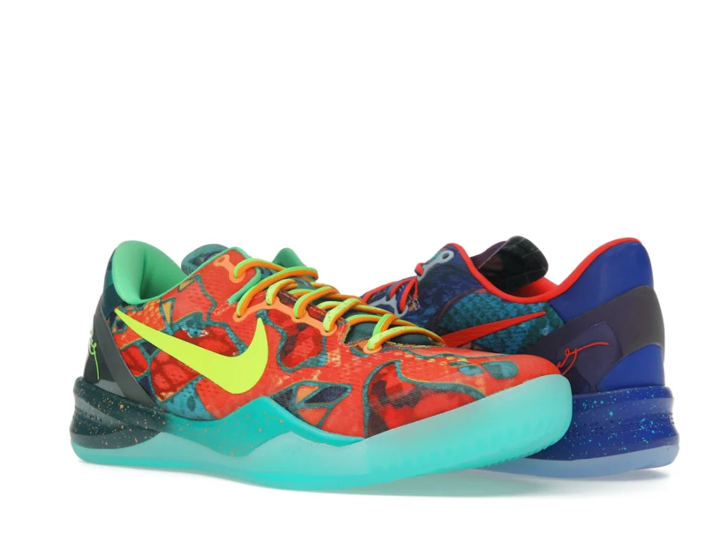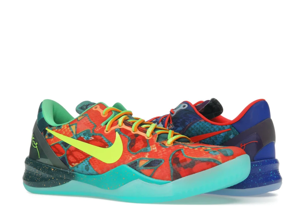 Built with a lightweight engineered mesh upper, superior cushioning, and a low-profile silhouette, the Kobe 8 Protro remains one of the most performance-driven basketball sneakers to date. The combination of bold hues, reflective details, and oversized branding makes this sneaker stand out both on and off the court.